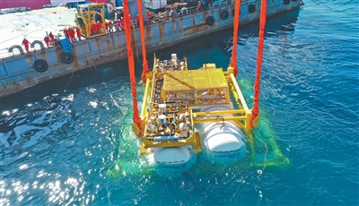 海南陵水海底数据舱下水现场。 |