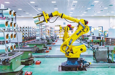 位于桐乡的中国巨石未来工厂,智能机器人正在检装产品。 |