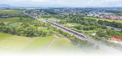 在印度尼西亚万隆,一列雅万高铁高速动车组正在行驶中。 |